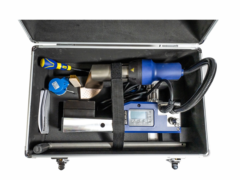 WELDY Roof-40 в сборе (включая: грузы, подвижную транспортную ось 220 мм, Т- образную рукоятку, пластины для начала сварки); Латунная щетка; Шестигранный ключ No 4; Кейс. |